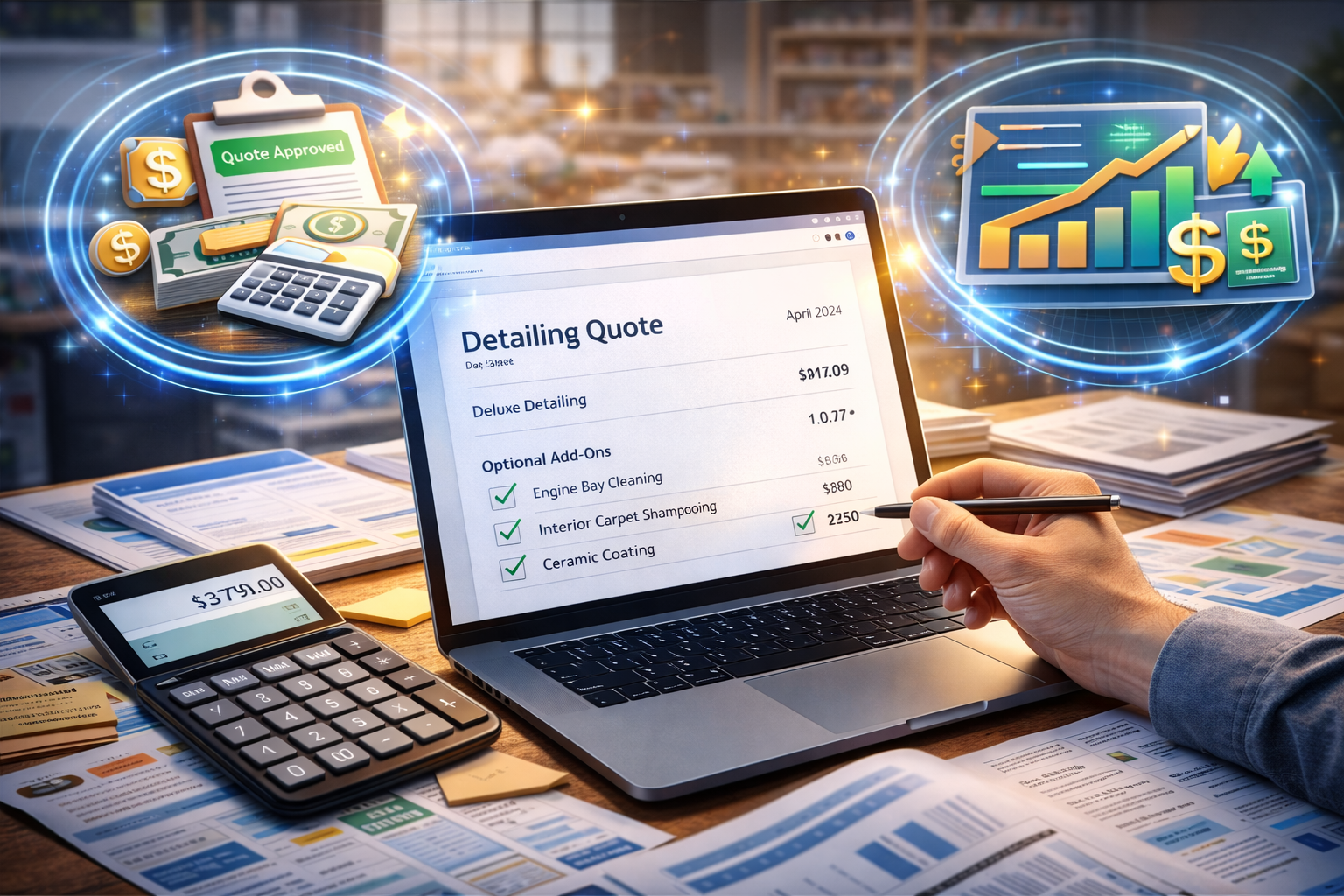 Use stronger pricing and structured quotes to close higher-value detailing jobs.